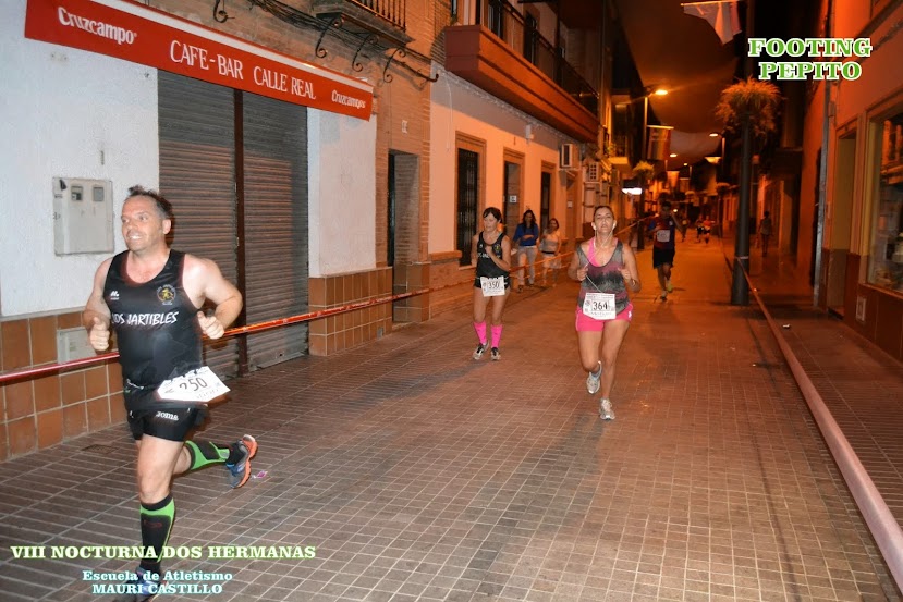 Noche de atletismo popular del bueno en las calles del municipio nazareno gracias a la clásica Nocturna organizada por los amigos del Club Atletismo Orippo de Dos Hermanas, cuya prueba se enmarcaba dentro de los actos del 25ª Aniversario del Club y que contó con un toque emotivo al estar dedicada al corredor Joaquín Jiménez Pérez ("ElectroautoJoaquín").